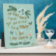 Scripture art with hand lettered Bible verse from 2 Timothy 1:7 - For God gave us a spirit not of fear, but of power, love and self-discipline. Hand drawn flowers, butterflies and leaves in popular mint and gold colour scheme.