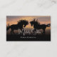 A beautiful pair of wild looking horses dancing together their manes and tails blowing in the wind. These friesian horses have long haired furry fetlocks. The background setting is a hilly landscape viewed during a glowing golden sunset. Professional business card design with an equestrian / horse theme.