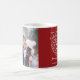 2nd anniversary dark red garnet heart personalised photo mug. The design features white script typography on dark red with your names and the words celebration of 2 years of love in script style font and a line art heart gemstone. Personalise with your own photo, names and anniversary wedding dates. The second wedding anniversary is associated with the gemstone garnet and the heart symbolises love. Other matching wedding anniversary gifts and paperware items available. Line art and design by www.mylittleeden.com on zazzle.