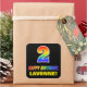This colourful, fun, and cheerful birthday-themed sticker design features a large number "2" and the message "HAPPY BIRTHDAY,", both having a rainbow spectrum gradient inspired pattern colouring, along with a bold yellow editable name. The background is coloured black. Fun birthday themed stickers like this might be used when giving a gift or present in celebration of somebody’s 2nd birthday, or perhaps maybe be given out to the attendees at a birthday celebration. [~Z0000480]