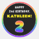 2nd Birthday: Colourful Rainbow # 2, Custom Name Classic Round Sticker
