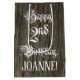 This formal and elaborate birthday themed gift bag design features the message “Happy 2nd Birthday,” in luxurious script style text, on a faux wood look inspired pattern background. It also features a custom recipient name. A gift bag like this might be used when giving a gift or present in honour of somebody’s second birthday. [~Z0000558]