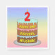 This fun and cheerful birthday-themed paper napkin design features a cartoon-style depiction of a three-tier birthday cake having a numeral-shaped candle on top showing the number “2“, along with the message “HAPPY 2ND BIRTHDAY,”, and a personalised recipient name. The background features a multicolored pastel rainbow spectrum inspired gradient pattern. Paper napkins like these might be used when celebrating somebody’s second birthday. [~Z0000623]