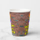 This vibrant and exciting urban street art and graffiti inspired birthday paper cup design features a large number “2” having a colourful rainbow spectrum gradient inspired pattern. It also features the message “Happy 2nd Birthday,”, and an editable name. The background has a brick wall pattern. Colourful, vibrant paper cups like this might be fun to use at a birthday celebration being held to honour somebody’s second birthday. [~Z0000543]