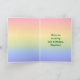 The front of this fun and upbeat birthday themed greeting card design features the number “2“ with a multicolor rainbow spectrum inspired gradient pattern, along with the message “HAPPY 2nd BIRTHDAY,” and a custom recipient name. The photos surrounding the rainbow-patterned number on the front can be personalised, perhaps with photos of the recipient, the recipient’s family and friends, or the sender(s) of the card. There is also a colourful rainbow spectrum inspired background gradient pattern behind the personalised message. The inside has an editable birthday greeting message, or could perhaps be cleared and left blank if a message is to be written by hand instead. A cheerful, editable birthday greeting card like this might be sent in celebration of somebody’s second birthday. (Photography © Storytree Studios, Stanford, CA.) [~Z0000662]