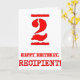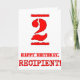 This fun birthday greeting card design features a large red number “2” having a rubber stamp inspired look, plus the birthday greeting message “HAPPY BIRTHDAY,” and a personalised name on the front. The inside has a customised birthday greeting message, or could perhaps be cleared and left blank if a message is to be written by hand instead. A fun editable birthday greeting card like this might be sent in celebration of somebody’s second birthday. [~Z0000524]