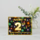 The front of this bold and exciting second birthday celebration foil invitation postcard design features a personalised name, a large number “2nd”, the message “BIRTHDAY PARTY!”, and a border. The background of the front features a joyful, colourful pattern inspired by bursting celebratory fireworks. The back features personalised details about the event, such as the date, time, venue/location, and any other information that may be important. Customised invitations like these might be a fun way to let attendees know about a birthday party/gathering being held to celebrate somebody’s 2nd birthday. [~Z0000609]