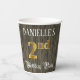 This opulent and elegant birthday paper cup design features a custom name and the message “2nd Birthday Party”. The large number “2nd” has a faux/imitation gold-inspired colouring pattern, the words “Birthday Party” are in luxurious script-style text, and the background features a faux/imitation woodgrain-inspired appearance. Ornate, fancy paper cups like this might be useful to have at a birthday celebration being held to celebrate somebody’s 2nd birthday. [~Z0000568]
