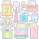 Decorate a locker, car window, gift or favour bag, add to the wrapping on special present, or make a card for that big 2nd birthday. A collection of graphic cakes, presents and birthday stickers all in pretty pastels with the number 2 proudly displayed.