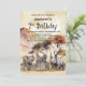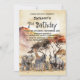 Invite your friends and loved ones and celebrate your child's 2nd birthday with this safari birthday party invitation that features an African savanna landscape in the background and a group of baby animals, which includes a tiger cub, elephant, rhinoceros, ostrich chick, zebra and stork in the foreground.