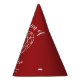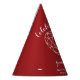 2nd garnet red wedding anniversary party hats. The design features white script typography on dark red with your names and the words celebration of 2 years of love in script style font and a line art heart gemstone. Personalise with your names and anniversary wedding dates. The second wedding anniversary is associated with the gemstone garnet and the heart symbolises love. Other matching garnet wedding anniversary items available. Line art and design by www.mylittleeden.com on zazzle.