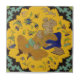 This is reproduced from one of a colourful pair of antique tiles that both feature elaborately turbaned golden robed men framed by typically Mideastern floral motifs and a decorative border. This tile features a man reading. In bright colours of Persian Yellow, turquoise, gold, lime green, brown. This tile goes on the left. The right tile is available separately. Available in 4.5 and 6 inch wall tiles for kitchen, bath, shower, laundry, and more. Can be used as a fireplace surround as well as coasters, decorative boxes, desk accessories, and a host of other Zazzle items.