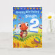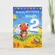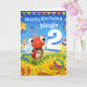 A gorgeous little ladybug hovering above sunflowers and bringing a colourful birthday greeting for the very special 2 year old in your world.
