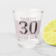 A fun shot glass to use when you hit 30. Design features a number 30 silver balloon on a pretty blush pink background. Just add your name