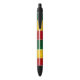 REGGAE STRIPES: Red, green & gold in bold, stencil text, “REGGAE” above vertical stripes. This image symbolises the Reggae music genre, Reggae culture, Jamaica & the Rastafarian Movement.