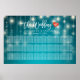 30+ Tables Wedding Seating Chart Poster Templates - Elegant Lettering Script and Vintage String Lights with Turquoise Blue Glitter Sparkle Background.
