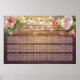 30+ Tables Wedding Seating Chart Poster Templates - Vintage Watercolor Floral and Elegant String Lights on Rustic Wood Texture Background.