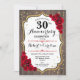30th Anniversary Invitation - Rustic Wood Gold Red