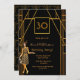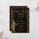 Elegant faux gold and glam for a 30th birthday party! An art deco style birthday party invitation in faux gold and black for a glamourous celebration. Decorated with a 1920's style flapper girl on front and an art deco pattern on the back. Templates the age 30, name and for your party information.