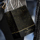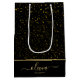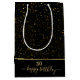 Elegant, classic, glamourous and feminine style birthday party gift bag. A gold coloured ribbon with golden glitter and sparkle, a bit of bling and luxury for a birthday. Black background. With the text: Happy 30th Birthday! Customise it with your own.