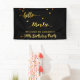 Elegant and modern banner for a 30th birthday party.  Black backdrop and faux gold text written with a trendy hand-lettered style script: hello thirty. With golden dots as decor. Templates for name and the text: Welcome to …. golden letters. You can change the background colour to match your theme. Click customise and then "select a background colour" on your right.