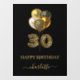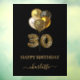 For a glamourous 30th birthday party. A black background, decorated with balloons. With the text: Happy Birthday. Personalise and add a name. The name is written in dark rose gold with a modern hand lettered style script with swashes. Number 30 is written with a trendy balloon style font, leopard pattern. To keep the swashes only delete the sample name, leave the spaces or emoji's in front and after the name.