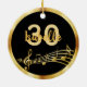 Black background with faux gold music notes for a 30th birthday party. With a faux gold frame. Templates for age and name. The name is written in a hand-lettered style script. Golden letters and number. For both him and her. Great as a birthday gift or a keepsake.
