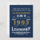 30th Birthday Born 1993 Blue Gold Retro Legend Invitation