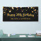 Celebrate a 30th birthday for him or her with this black and gold themed banner with gold stars and handwritten brush script text you can personalise with your custom message. CHANGES: You can change the background colour and/or the text font style, size, colour and placement to coordinate with your birthday party theme by clicking on the CUSTOMIZE FURTHER tab. Contact the designer via Zazzle Chat or makeitaboutyoustore@gmail.com if you'd like this design modified, on another product or want coordinating items.