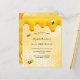 Elegant, fun, 30th birthday summer party invitation. Yellow, white background with a honeycomb pattern. Decorated with golden, dripping sweet honey and happy bumble bees. The name is written with a modern hand lettered style script. Black letters. Perfect for a summer tea party in a garden, backyard.