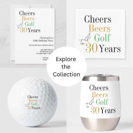30th Birthday Golf Party Cheers Beers MinimalDesigned by Only The Moon