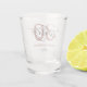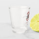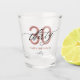 Modern chic girly shot glass for 30th birthday. Design featuring champagne sparkly glitter texture, rose gold 30 and calligraphy script thirty. Personalise with a name.