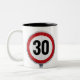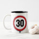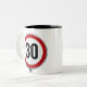 30th birthday - ANY AGE coffee mug with traffic sign with textures and metal bar.