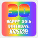 This cheerful and joyful birthday square sticker design features a large number “30” having a colourful rainbow spectrum inspired gradient pattern. It also features the message “HAPPY 30th BIRTHDAY,”, and a customisable recipient name. The background also features a fun multicolored rainbow spectrum inspired gradient pattern. Fun, exciting, personalised stickers like this might be given as a birthday gift, or used while wrapping gifts, or perhaps used as a birthday party decoration when celebrating somebody’s thirtieth birthday. [~Z0000571]