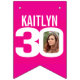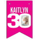 30th bright pink and white add your own three photos birthday bunting flags. Personalise with your own honouring name and three photos in the 0 of 30. Uniquely design by Sarah Trett for www.mylittleeden.com