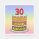 This fun and joyful birthday-themed paper napkin design features a cartoon-style depiction of a three-tier birthday cake having number-shaped candles on top showing the age “30“, along with the message “HAPPY 30TH BIRTHDAY,”, and a personalised recipient name. The background features a multi-colour pastel rainbow spectrum inspired gradient pattern. Paper napkins like these might be used at a party for somebody who is celebrating their 30th birthday. [~Z0000623]