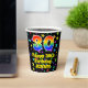 This joyful and colourful birthday paper cup design features a large number “30” having a rainbow spectrum gradient inspired pattern. It also features the message “Happy 30th Birthday,”, and a personalised name. The background features a vibrant and colourful star field inspired pattern. Colourful, vibrant paper cups like this might be fun to use at a birthday party/celebration being held to celebrate somebody’s thirtieth birthday. [~Z0000540]