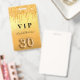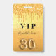 A modern, stylish and glamourous badge for a 30th birthday party. A fauc gold metallic looking background with faux glitter drip, paint dripping look. The name is written with a modern hand lettered style script. With the text: VIP Number 30 is written with a balloon style font, script.