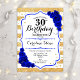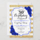 30th Birthday - Gold Stripes Royal Blue Roses Invitation