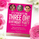 Bold simple graphic bright hot pink, and rose gold foil or your own foil colour photo template 30th big three oh birthday invitation. Personalise this milestone birthday invitation with your own birthday party event details, and three different photos of your birthday girl in the photo circles for your now and then photos. Other years colours and matching items are available. © Original design by Sarah Trett for www.mylittleeden.com on Zazzle.