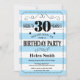 30th Birthday Invitation Blue and White Stripes