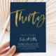 Thirty Navy, White and Faux Gold Birthday Invitation with modern brush script font. A simple and fun adult birthday invitation for your 30th birthday party.