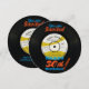 Fully customisable funny visual for your 30th birthday party on recto-verso round shape invitation card. Amaze your friends and family with this 60's vintage record-like! Matching birthday square envelope with the original 45 rpm record sleeve, round sticker and guest book (hard cover).