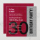 30th Birthday Modern Red Silver Black W1480 Invitation
