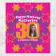 Bright pink and yellow 30th birthday add your own photo wine labels. Add your own thirtieths birthday photo to the 0 of 30 and customise with the birthday message / name of your choice. Currently reads Happy Birthday Katherine 30 a classic vintage. A great way to customise your alcoholic birthday gifts. Unique design by Sarah Trett. www.sarahtrett.com