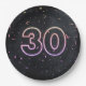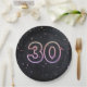 Glowing neon sign with confetti on black background for 30th birthday party.
