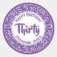 30th Birthday Number Pattern Purple/White 30 Classic Round Sticker