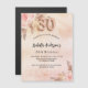 A rose gold, blush pink rustic gradient background. Decorated with rose gold and pink florals, roses, pampas grass. Personalise and add a name and party details. Number 30 is written with a balloon style font.