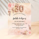 A rose gold, blush pink rustic gradient background. Decorated with rose gold and pink florals, roses, pampas grass. Personalise and add a name and party details. Number 30 is written with a balloon style font.