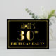 The front of this Roaring Twenties inspired thirtieth birthday celebration foil invitation features a customisable name, a large art deco style inspired number “30th”, the message “BIRTHDAY PARTY”, and a border pattern consisting of lines. The front also features a black-coloured background by default, but it can be customised to a different colour if desired. The back features personalised details about the event, such as the date, time, venue, and any other information that may be important. Luxurious, elegant, personalised invitations like these might be used to invite guests to a birthday party being held to honour somebody’s 30th birthday. [~Z0000591]